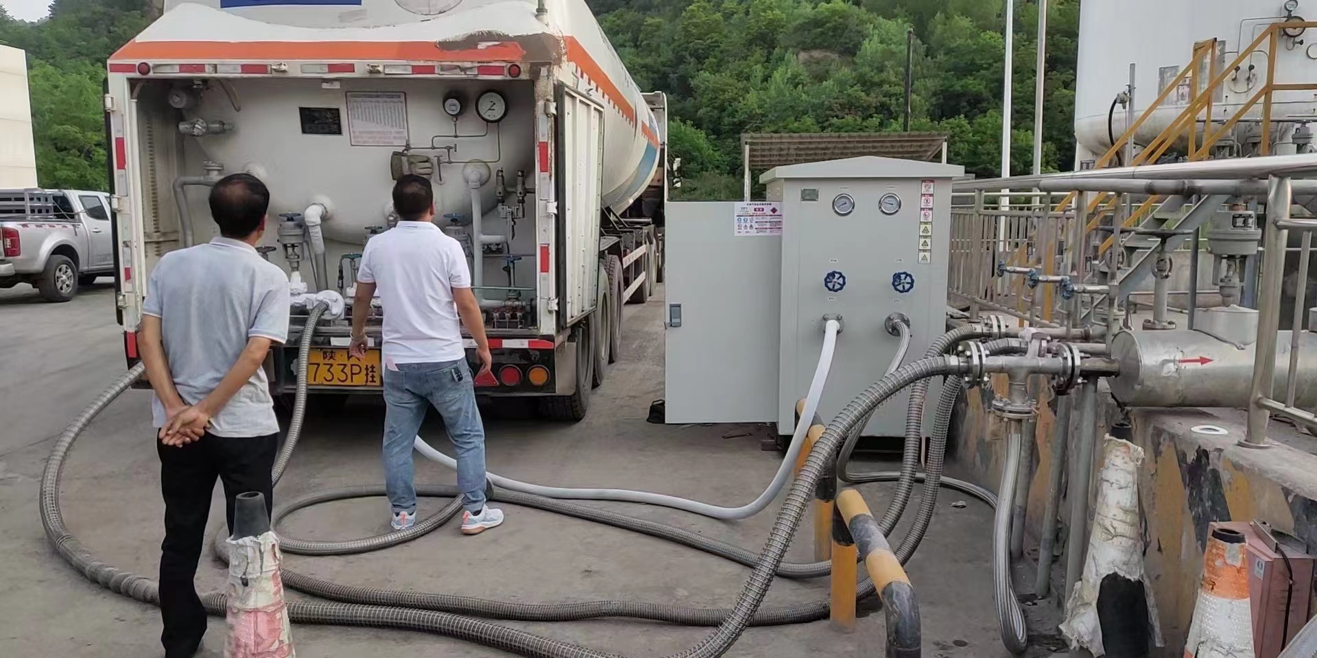 卸車(chē)回收裝置,徹底解決槽車(chē)卸車(chē)卸不干凈問(wèn)題。由于液價(jià)上漲,每次卸車(chē)從0.3mpa抽到0.1mpa大約能卸車(chē)出150公斤到200公斤天然氣??蛻?hù)一旦使用,十分滿(mǎn)意。